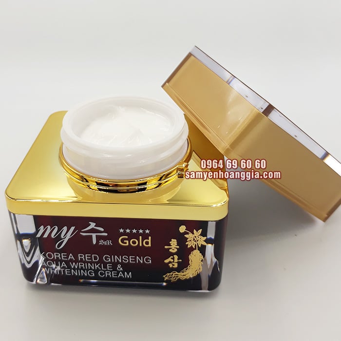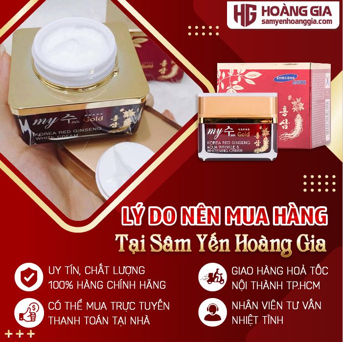 Kem Dưỡng Da Hồng Sâm My Gold Hàn Quốc bổ sung tinh chất nhân sâm làm mịn và trắng da hiệu quả, ngoài ra còn giúp giảm nhờn, chống lão hóa và làm se khít lỗ chân lông làm giảm các vết thâm nám, làm đều màu da hiệu quả.