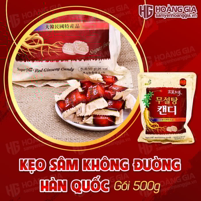 Kẹo sâm Hàn Quốc không đường 500g loại tốt là một trong những sản phẩm Kẹo hồng sâm Không đường được ưa chuộng trên thị trường, Với thành phần hồng sâm 6 năm tuổi của Hàn Quốc được chiết xuất qua dây chuyền máy móc hiện đại cùng quá trình kiểm soát nghiêm ngặt cho ra sản phẩm chất lượng tốt nhất. Kẹo sâm Hàn Quốc không đường 500g giúp bồi bổ cơ thể, tăng cường sức khỏe, nâng cao sinh lực, tăng sức đề kháng, giảm mệt mỏi, căng thẳng, cho cảm giác thoải mái và sảng khoái.