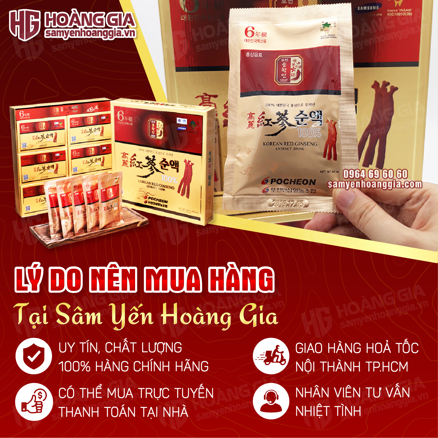 Lưu ý: Các sản phẩm đang bán tại Sâm Yến Hoàng Gia là thực phẩm bảo vệ sức khỏe, không phải là thuốc và không thể thay thế cho thuốc chữa bệnh, mức độ hiệu quả tùy thuộc vào cơ địa của mỗi người. Ý kiến tư vấn, nhận định, khuyên dùng hay hướng dẫn của chúng tôi không thể thay thế chỉ định cụ thể của bác sĩ.